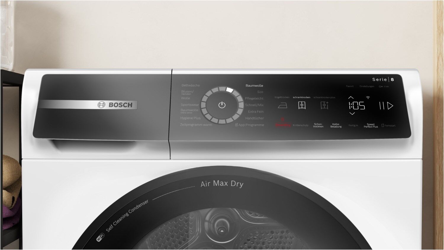 - Air Max Dry: perfekte Trocknungsergebnisse mit optimiertem Luftstrom und weniger Energieverbrauch